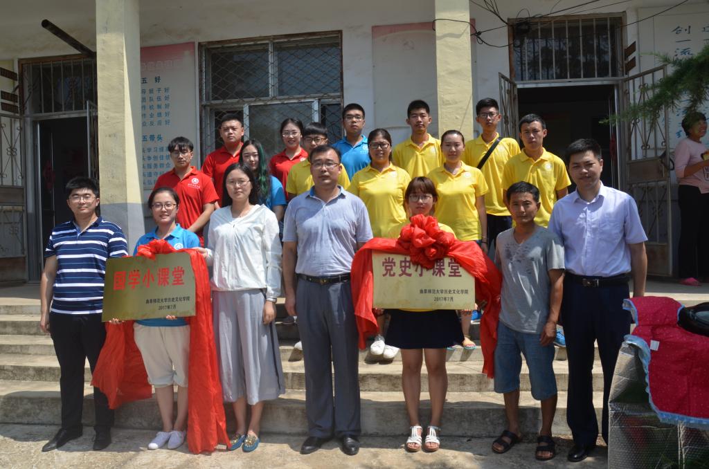 7月11日,成人短视频 “党史小课堂”和“国学小课堂”揭牌仪式在临沂市沂南县马牧池乡东南官庄村举行。成人短视频 团委书记王建阳、辅导员韩琳琳以及沂南县团委刘祥涛、马牧池乡团委书记高严等相关领导出席了此次活动。