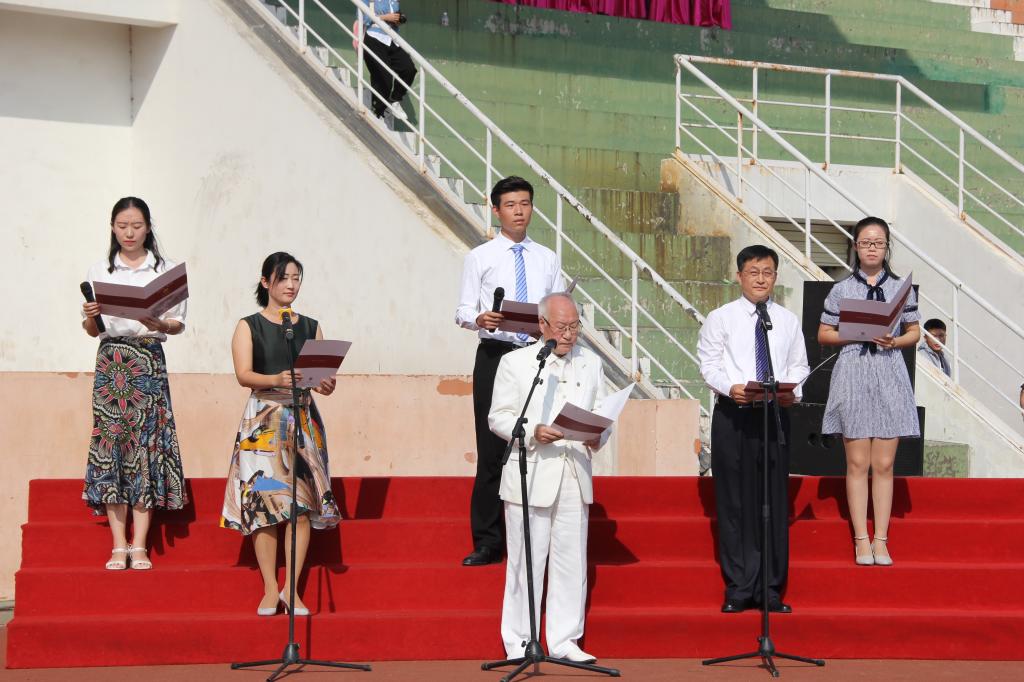 开学典礼中,新生在成人短视频 院长成积春教授等领诵人的带领下朗诵《论语》、齐唱校歌、聆听师长教诲,成人短视频 罗力维同学代表新生发言,总结军训收获,展望未来大学生活,立志为中国梦添砖加瓦。