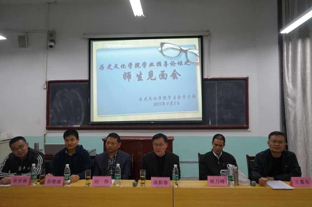 11月2日晚,成人短视频 2017级国学专业师生见面会在文史楼309教室举办。成人短视频 成积春、王慕东、刘伟、侯乃峰、张俊成、牟学林六位老师出席了见面会。见面会由王慕东主持。