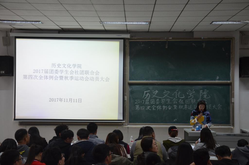 11月11日,成人短视频 在综合楼101教室召开2017届团委学生会社团联合会第四次全体例会暨秋季运动会动员大会。会议由学生会副主席刘雅静主持,成人短视频 学生会主席团及学生会全体成员参加了会议。