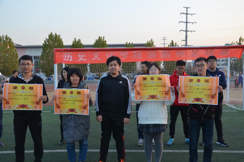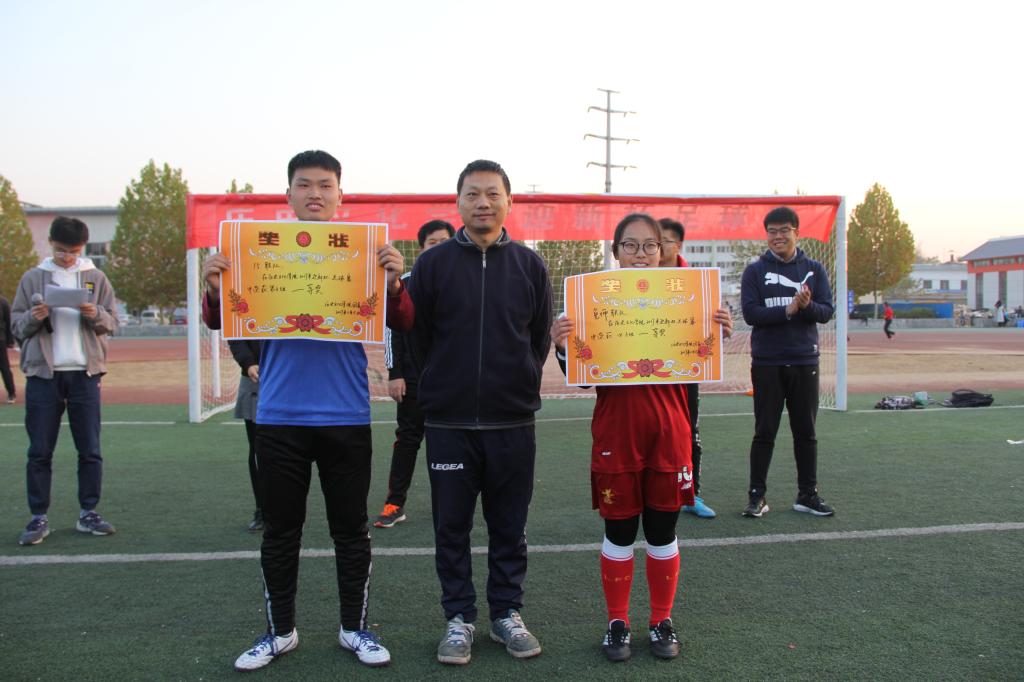 11月15日,经过两周多激烈的角逐,成人短视频 2017年“迎新杯”足球赛在西操场落下帷幕。成人短视频 刘伟老师,前足球队队长肖常志,前学生会副主席、前足球队副队长朱晓明,学生会副主席许鹏、郭伟伟出席闭幕式并为获奖队伍颁奖。