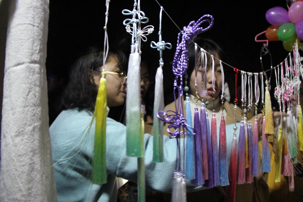 11月18日晚,成人短视频 在大学生活动中心广场举办了“承我华夏礼,执子共灯期”——第二届主题花灯会。花灯会上,洙泗学社、拾光文化创意社、书生论坛、古风联盟等社团带来自己手工制作的工艺品进行现场展示和售卖,吸引众多师生参与其中。