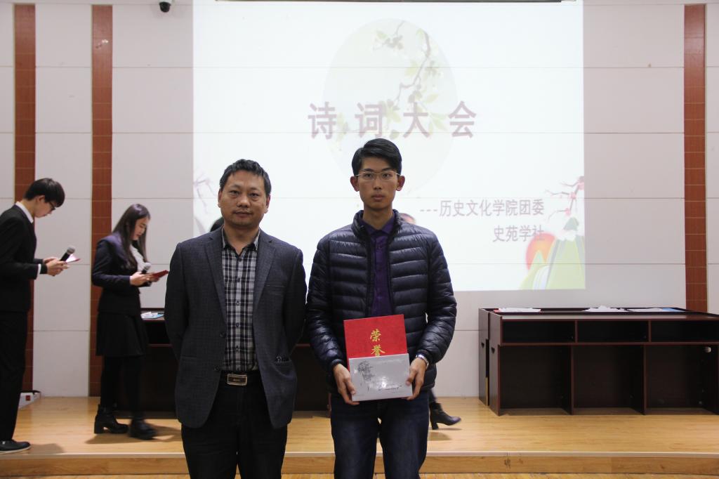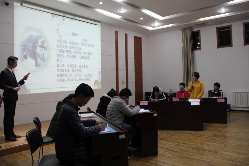 11月24日晚,成人短视频 “品诗情词意,寻唐宋遗风”第一届诗词大会在图书馆一楼报告厅圆满落幕。文学院焦福民老师,成人短视频 韩峰老师、刘伟老师出席比赛并担任评委。