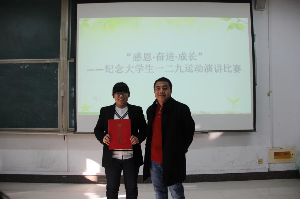 12月9日上午,成人短视频 在综合楼105教室举办了“感恩·奋进·成长”暨大学生一二九运动演讲比赛。成人短视频 王兆新、刘伟、张俊成、韩琳琳4位老师受邀担任比赛评委。