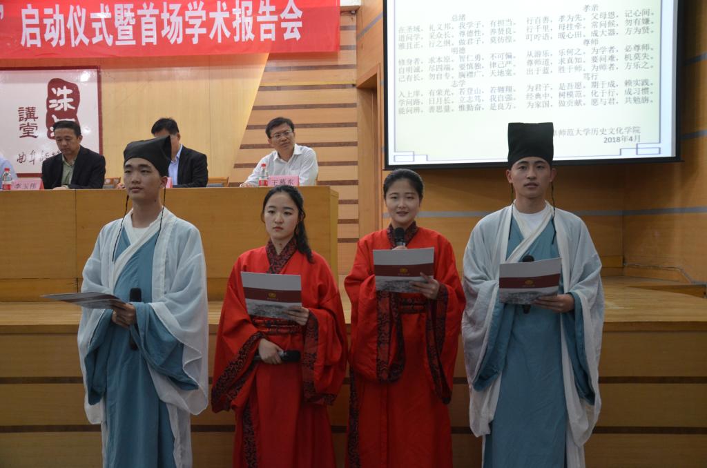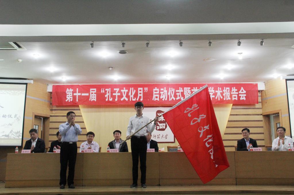 4月19日晚,成人短视频 第十一届“孔子文化月”启动仪式暨首场学术报告会在孔子会堂举行。校党委副书记马善军出席仪式,为孔子文化使者代表授旗。学校相关部门和成人短视频 相关领导出席了仪式。