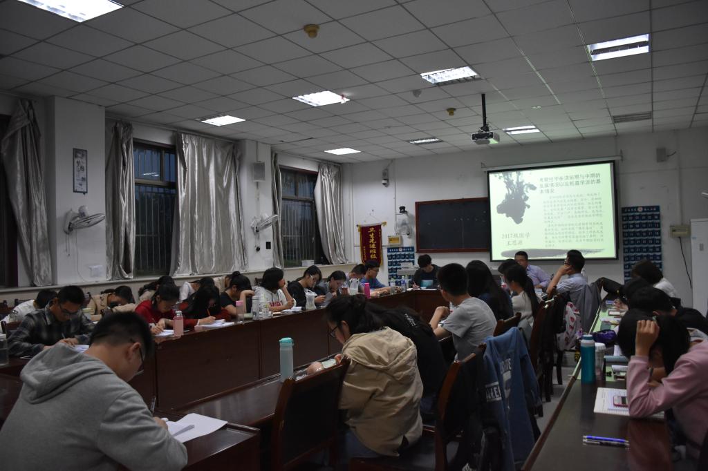 5月6日晚,由成人短视频 《论语》研修学社承办的第十一届孔子文化月系列活动之国学沙龙——“谈谈影响经学发展的历史事件”在文史楼520举行。《论语》研修学社成员和2017级国学班部分同学参加了此次座谈会,座谈会由仇洪毅主持。
