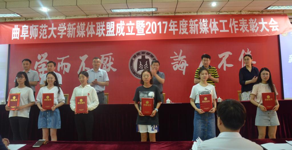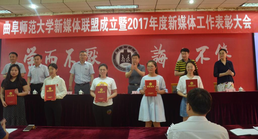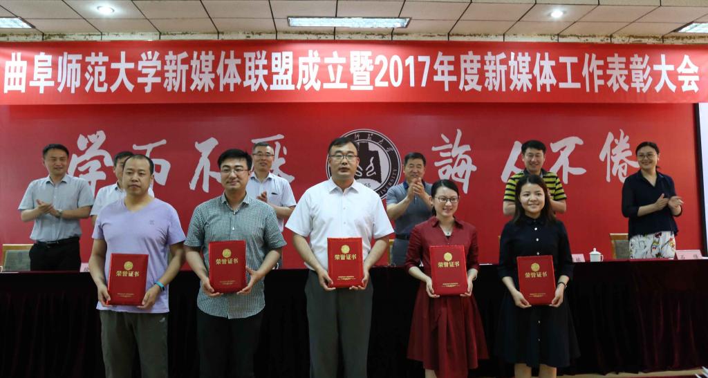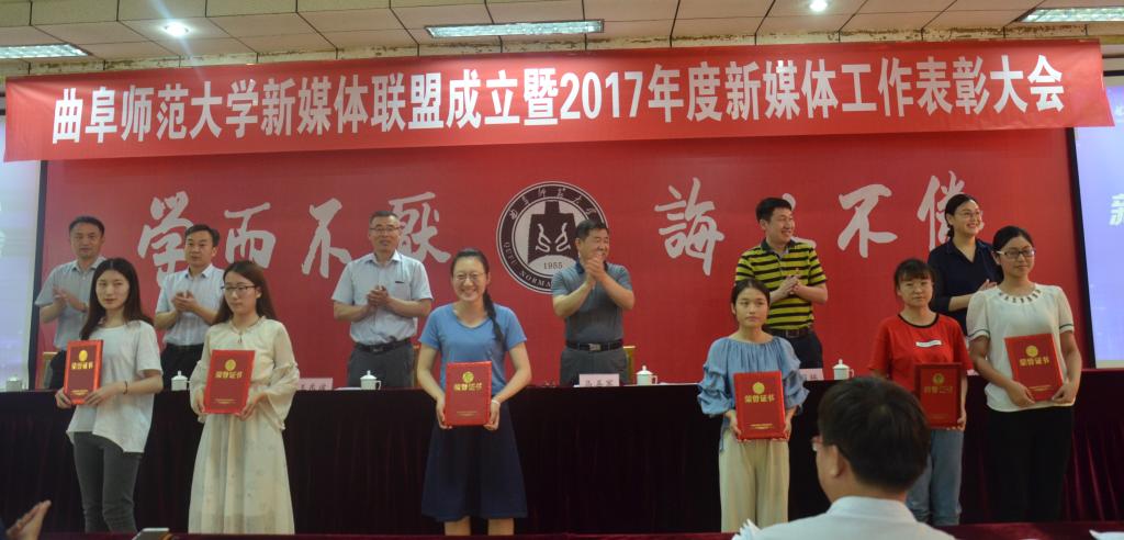5月17日下午,我校新媒体联盟成立仪式暨2017年新媒体工作表彰大会在曲阜校区科技楼二楼会议室、日照校区图书馆报告厅举行。大会经选举产生9个常务理事单位,27个理事单位,成人短视频 成功当选首届常务理事单位。成人短视频 新媒体团队在我校2017年度新媒体工作中表现优异,成人短视频 团委荣获“最具影响力校园新媒体平台”称号,团委书记王建阳荣获“新媒体工作优秀指导老师”称号,贺于真荣获“新媒体工作先进个人”称号,新媒体部荣获“新媒体工作优秀团队”称号,《最浪漫的事·从系服到婚纱,与你执手曲园》被评为我校2017年度新媒体推送“十大原创文章”。