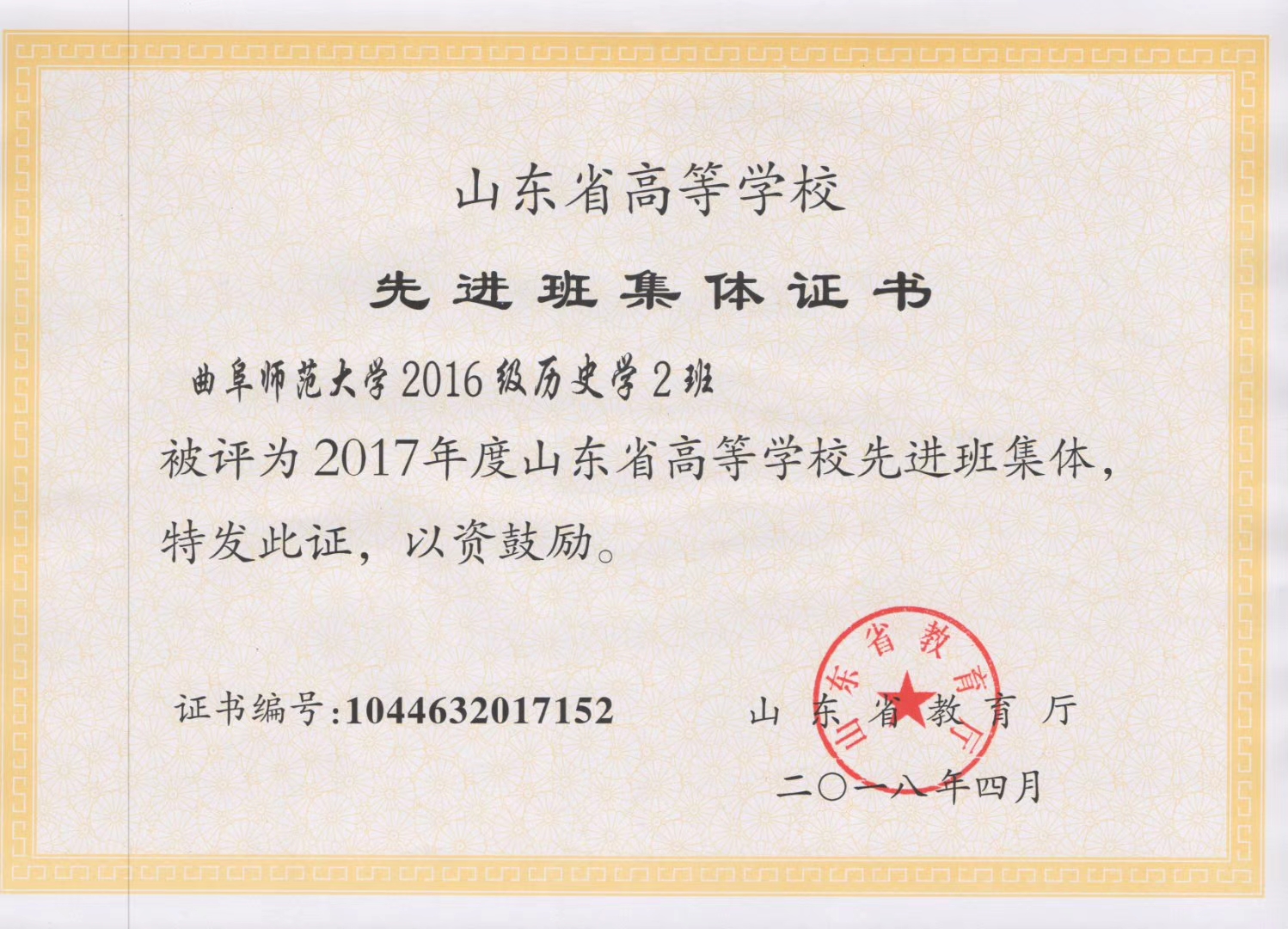 近日,2017年度山东省高等学校优秀学生、优秀学生干部和先进班集体评选活动落下帷幕。经过申报、评审等层层筛选,成人短视频 2016级历史二班被评为“2017年度山东省高等学校先进班集体”,贺于真、张兆成同学被评为“2017年度山东省高等学校优秀学生”。