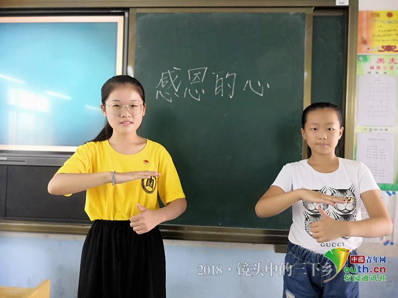 开设的音乐互动课的第一堂课是志愿者准备的《感恩的心》手语教学,同学们学地非常认真,通过一堂课的教学,同学们都掌握了歌曲的手语动作,并且在下课之前还进行了男女两组的上台表演,表现非常出色,这也大大激发了同学们的学习热情。下午志愿者们和小学生一起观看学习了视频《我在故宫修文物》,并且留了一个课后小作业,写一个观后感,希望可以从这个视频纪录片之中让他们了解更多关于文物保护方面的常识,了解当下稀世珍宝的“复活”技术,明白文物修复师的日常生活与工作,拓宽学生的视野。