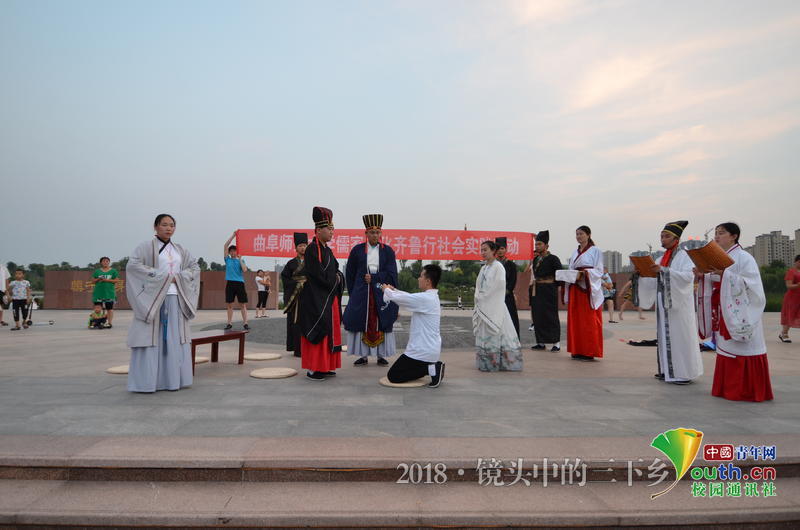 “谦谦君子礼 ,悠悠儒家行。”7月18日—21日,成人短视频 “儒家文化齐鲁行”社会实践团队前往菏泽、泰安、曲阜等地开展有关推广家庭成人礼可行性调查的社会实践活动。实践队员们身体力行传扬儒风,在这片文化圣地之上,一路撒播传播文化之种,用儒家文化滋养青春。