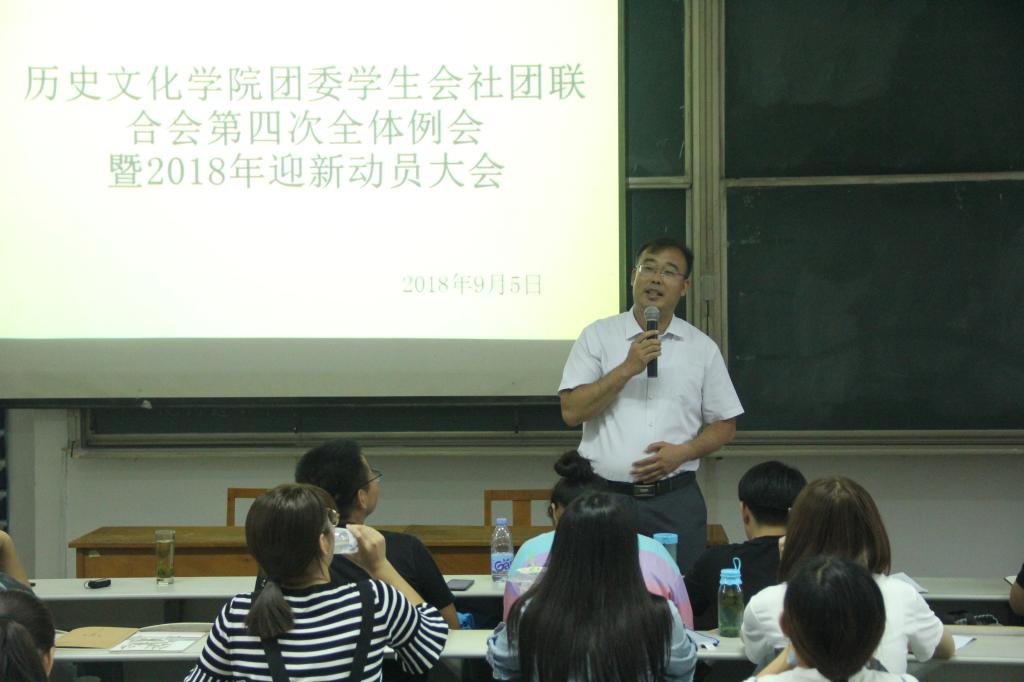 9月5日下午,成人短视频 2018年团委学生会社团联合会第四次全体例会暨迎新动员大会在综合楼206教室举办。成人短视频 团委书记王建阳、2018级新生辅导员韩琳琳以及学生会全体成员参加会议,会议由学生会主席温超主持。