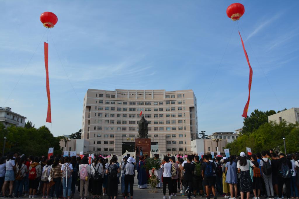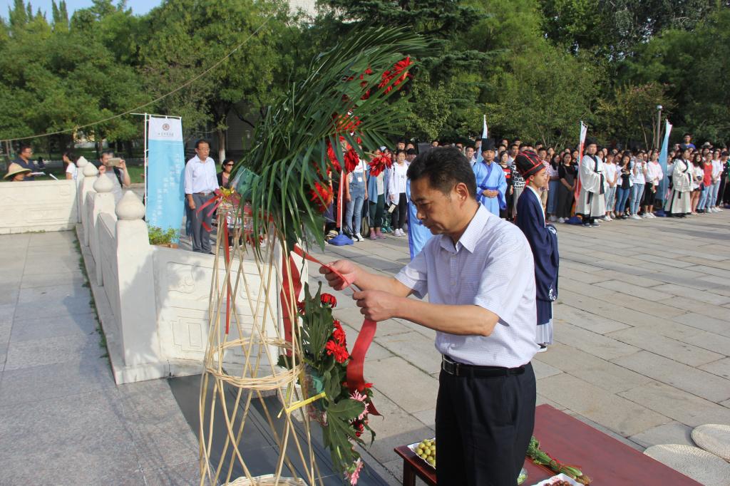 9月9日下午,成人短视频 教师节系列活动之“释菜礼”展演于孔子文化广场举行。成人短视频 党委书记尹明法、院长成积春出席活动,2018级全体新生现场观礼。