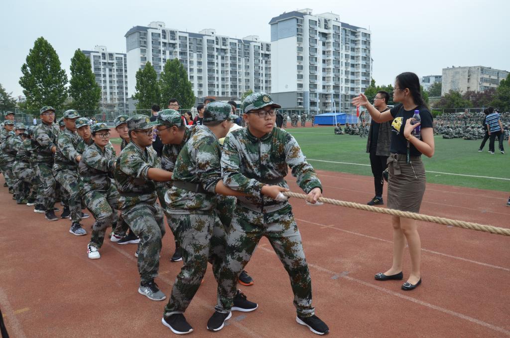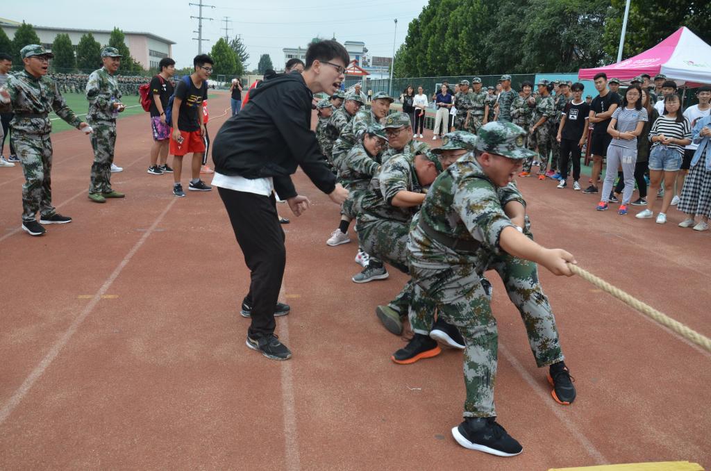 9月14日下午,我校2018级新生军训拔河比赛在我校西操场拉开帷幕。成人短视频 党委副书记王慕东、2018级辅导员韩琳琳到场为新生加油助威。