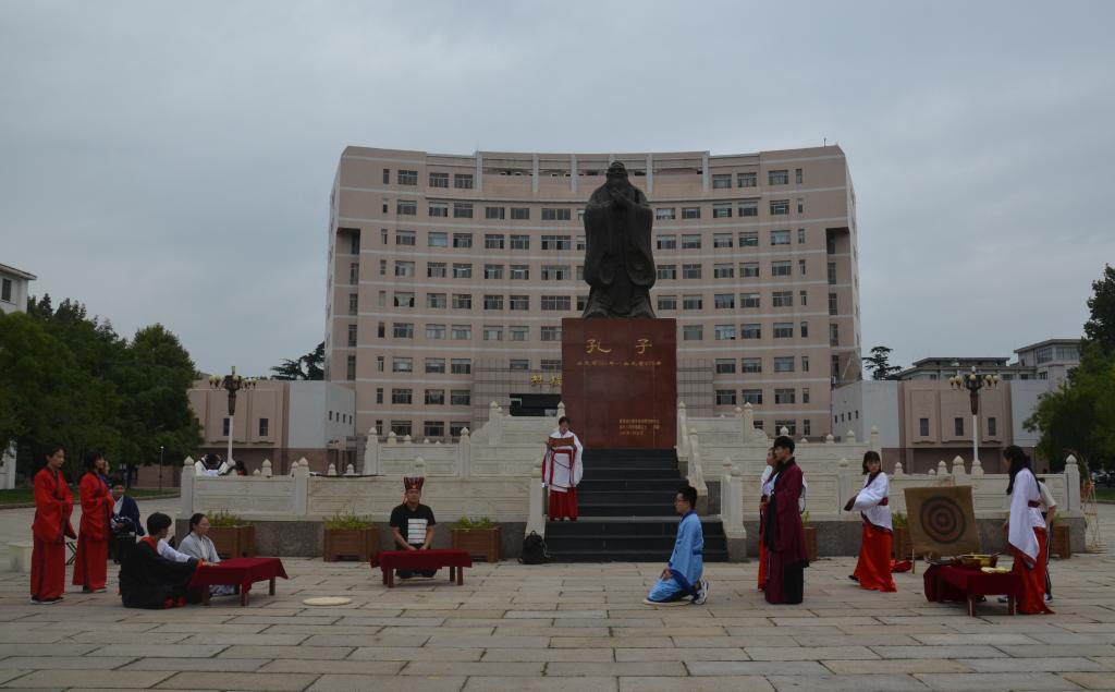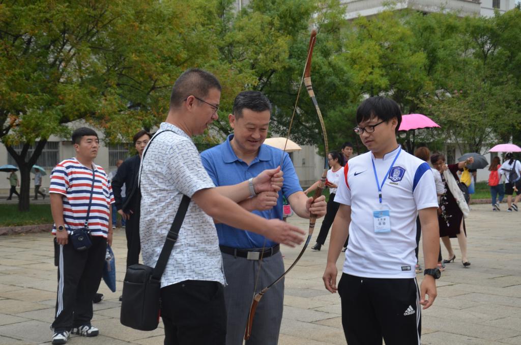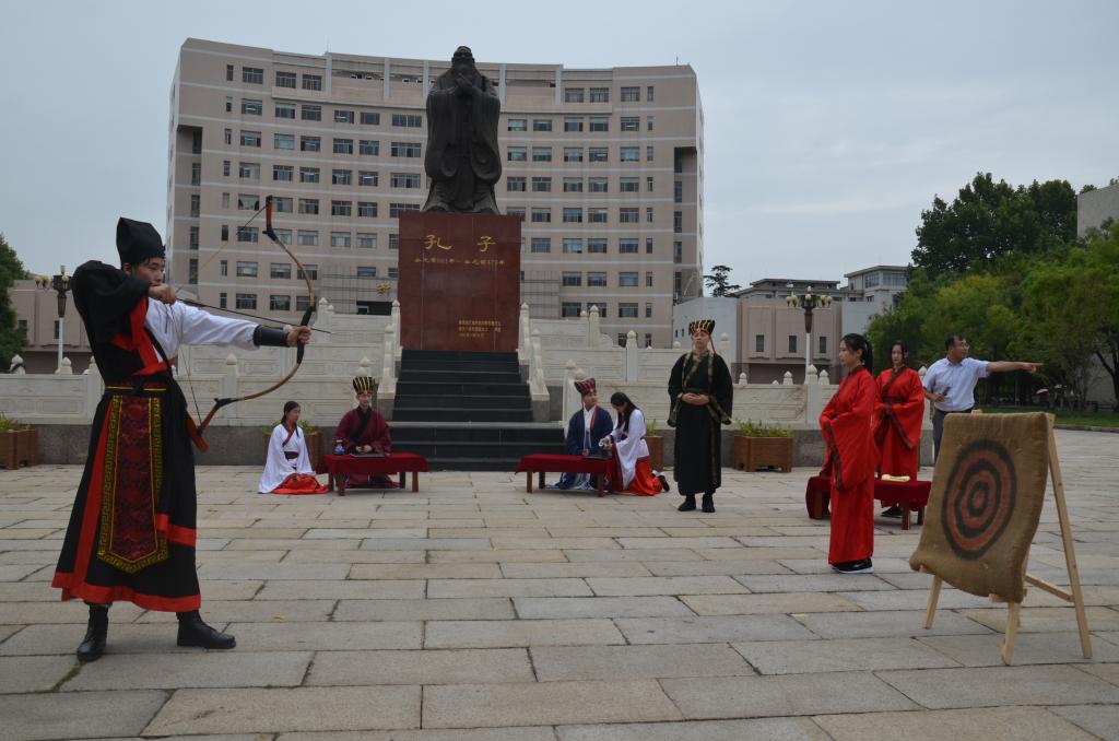 9月28日下午,成人短视频 大学生传统礼仪研修中心为参加山东省传统文化教师培训的老师进行了传统礼仪之射礼展演,展演在孔子文化广场举行,由团委书记王建阳主讲,参与山东省传统文化教师培训的老师们观看并参与了本次活动。