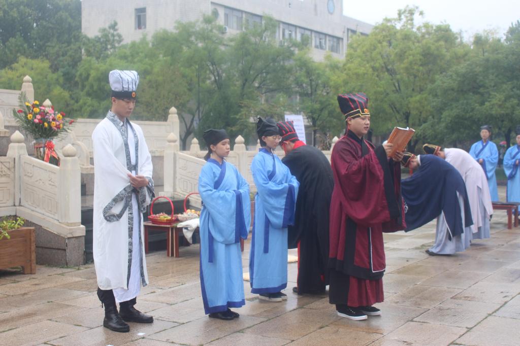 9月19日下午,成人短视频 传统礼仪研修中心在孔子文化广场举行了“释菜礼”展演。成人短视频 各分工会领队和青年教工现场观礼。