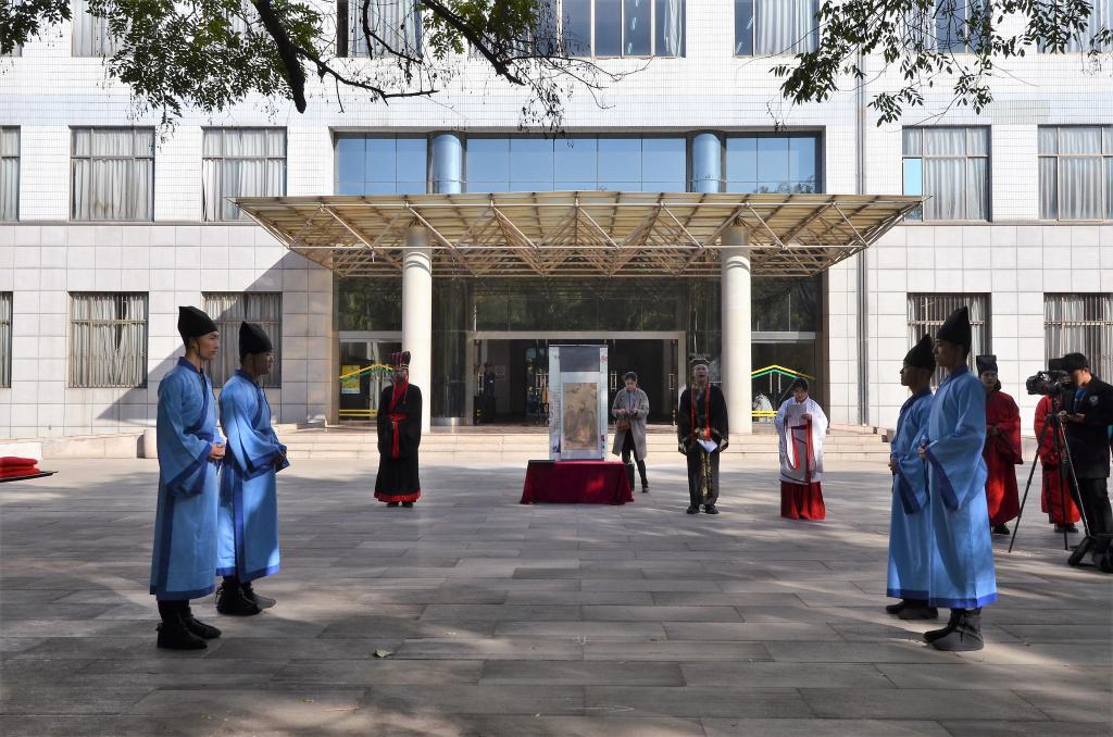 10月29日上午,中国教师博物馆规划展暨首批文物展开幕式在成人短视频 隆重举行。成人短视频 传统礼仪研修中心助力教师博物馆首展,分别在在综合楼前、西联广场进行“束脩礼”以及“射礼”展演。参加教师博物馆首展的领导嘉宾现场观礼。
