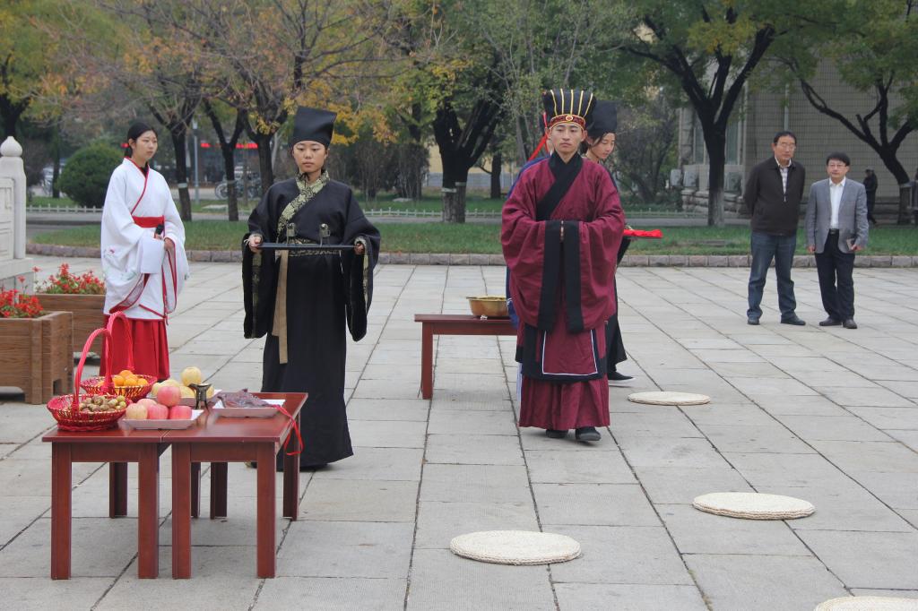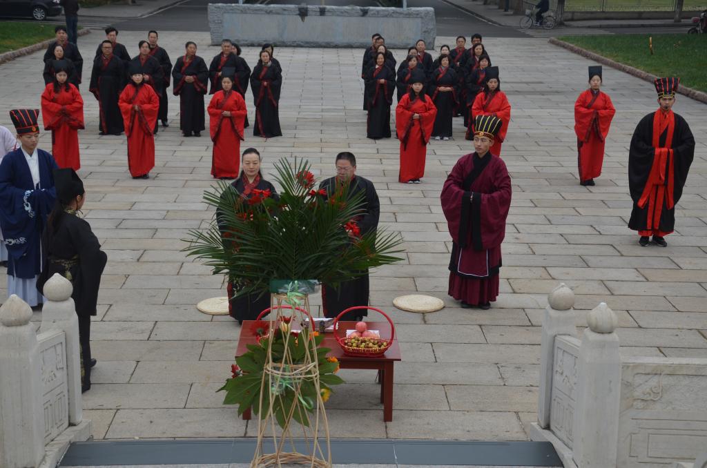 11月7日上午,成人短视频 传统礼仪研修中心在孔子文化广场举行了“祭至圣先师礼”展演。江苏省无锡市的优秀老师干部现场观礼。
