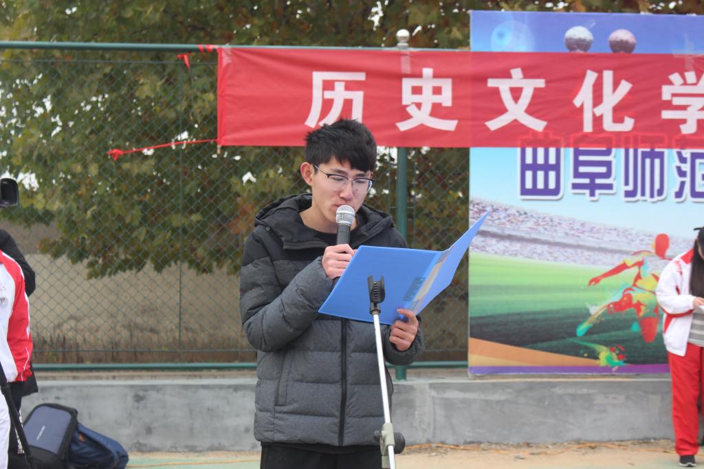 开幕式上,各班方队依次入场,各班方队以富有特色的表演展示了各班积极向上的精神面貌,由2018级历史一班和历史二班带来的动感十足啦啦操串场表演更是将开幕式的气氛推向了高潮。随后,王慕东致开幕词,向参加此次运动会的运动员、裁判员,以及同学们表示感谢,并预祝此次运动会圆满成功。2017级闫宝臣和2016级温超分别代表运动员和裁判员进行宣誓。