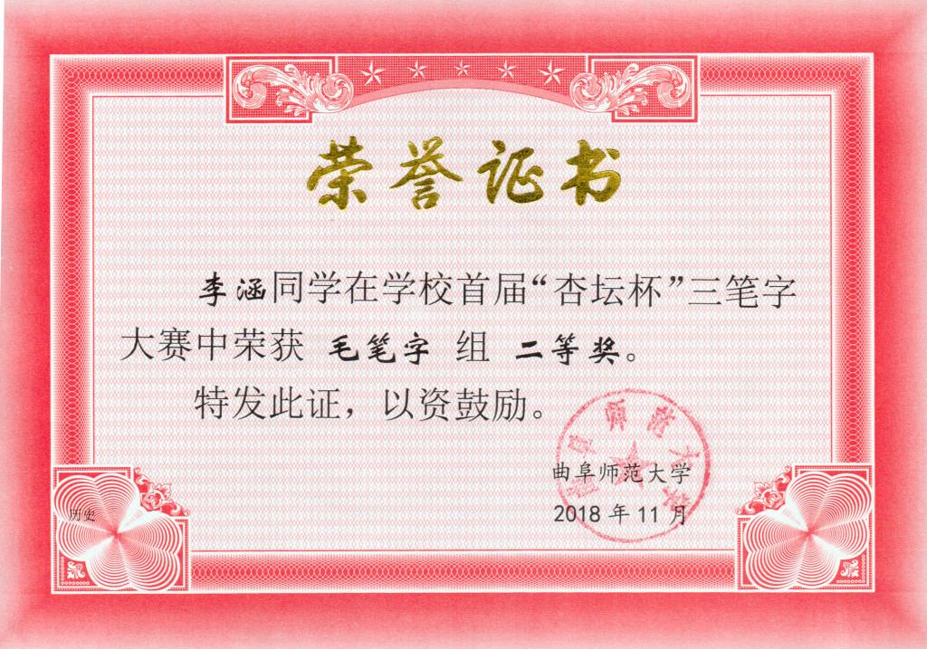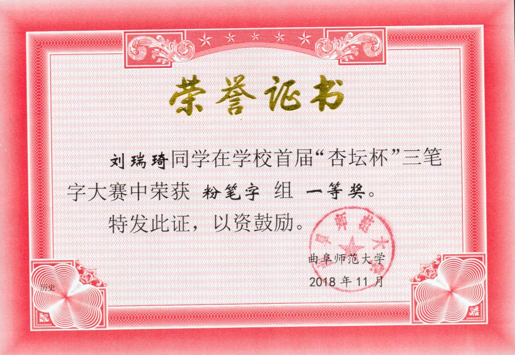 11月16日,我校首届“杏坛杯”三笔字大赛成功落下帷幕。成人短视频 师生积极参加比赛,经过激烈角逐,最终孟睿等三名同学荣获一等奖,李彦铭等四名同学获二等奖,于佳琪等六名同学获三等奖。王慕东、王昌沛、李建、韩锋、孟凡港及牟学林等六位老师荣获“优秀指导教师”称号。