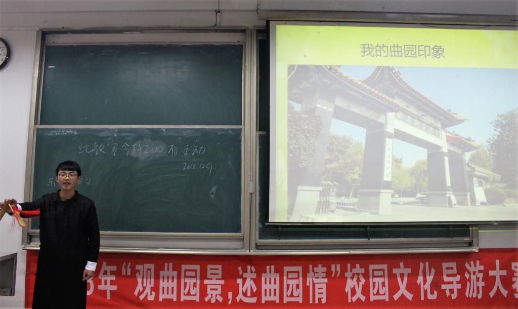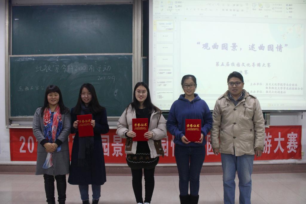 12月9日下午,由成人短视频 团委主办,拾光文化创意社承办的2018年“观曲园景,述曲园情”第五届校园文化导游大赛于综合楼203教室圆满落幕。成人短视频 骆明、刘庆余、续大鹏、乌云花、赵庆文等五位老师作为评委老师出席决赛并为获奖选手颁奖。