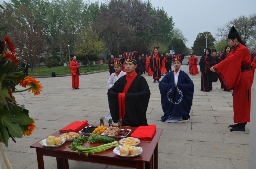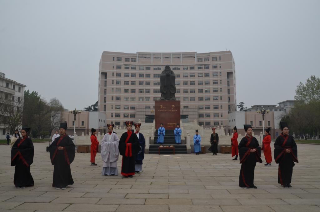 4月12日下午,成人短视频 传统礼仪研修中心在孔子文化广场为江苏省优秀教师干部举行了“迎宾礼”和“祭至圣先师礼”展演。