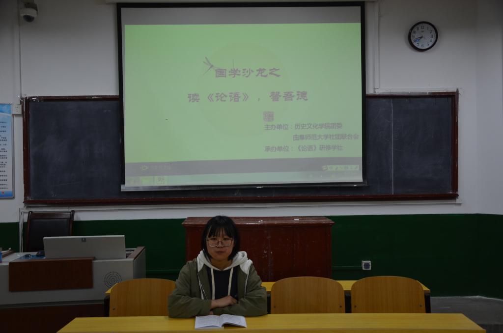 4月19日晚,由成人短视频 《论语》研修学社承办的第十一届孔子文化月系列活动之国学沙龙——“读《论语》, 馨吾德”在文史楼309教室举行。《论语》研修学社成员和2017级、2018级国学班部分同学参加活动,活动由徐鹏斐主持。