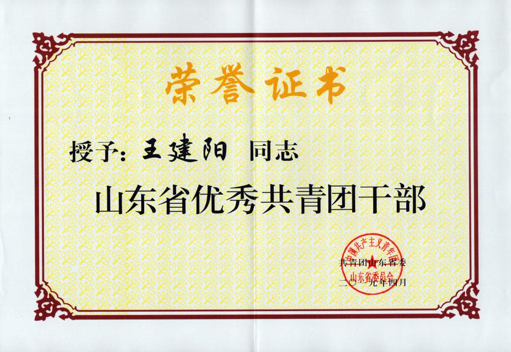 在纪念五四运动100周年之际,共青团山东省委开展了2018年度“两红两优”工作评选,成人短视频 团委书记王建阳老师获评"山东省优秀共青团干部"称号。