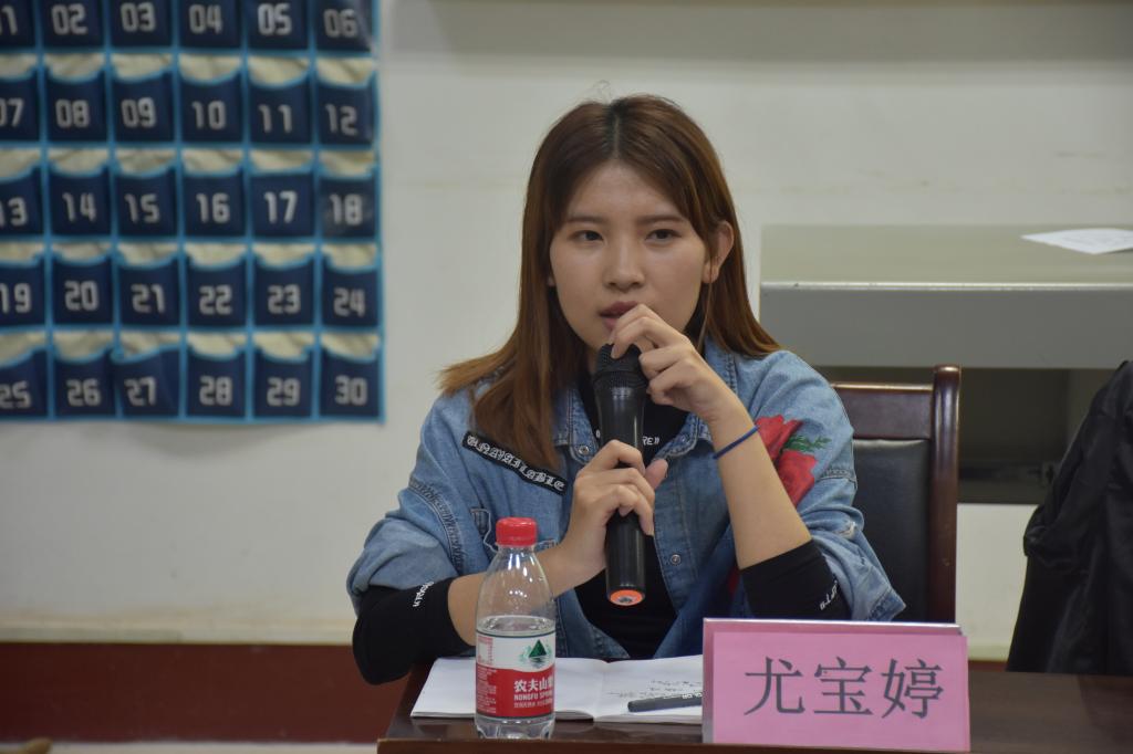 王星皓向同学们对各位学生代表做简单介绍。交流会上, 7位优秀学生代表根据自身考研经历,与同学们分享了自己的学习经验,针对如何选择考研学校与专业以及如何系统的学习英语、政治进行讲解,并向同学们推荐了参考书目以及各学校官网的参考大纲。