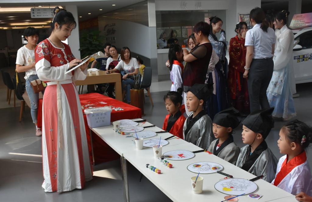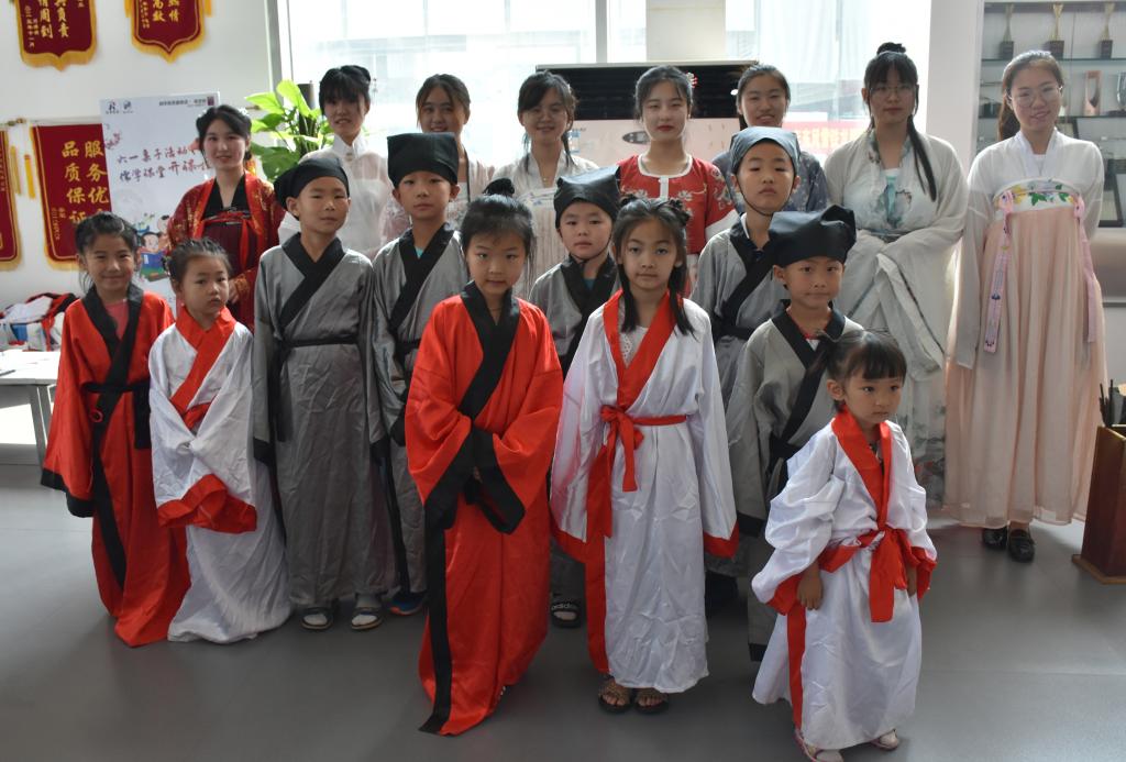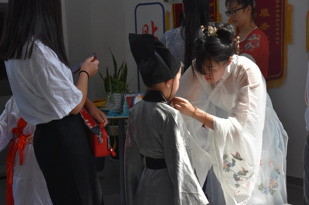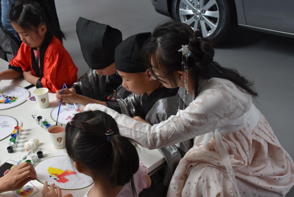6月2日上午,成人短视频 洙泗学社走出校园,去到润华别克曲阜店为小朋友们开设了一堂妙趣横生的儒学课堂。洙泗学社抓住儿童节的“尾巴”,为小朋友们教授了精彩的儒学文化知识。在课堂上,小朋友们体验了有趣的穿汉服、梳发髻、跟读论语、画团扇、写书法和投壶游戏。