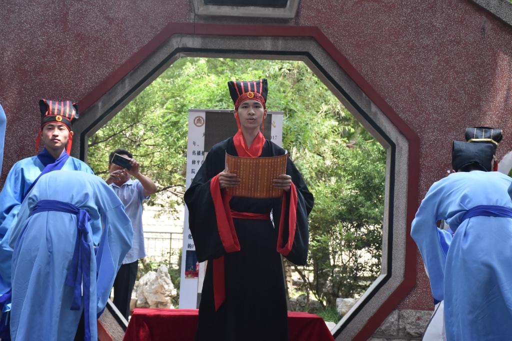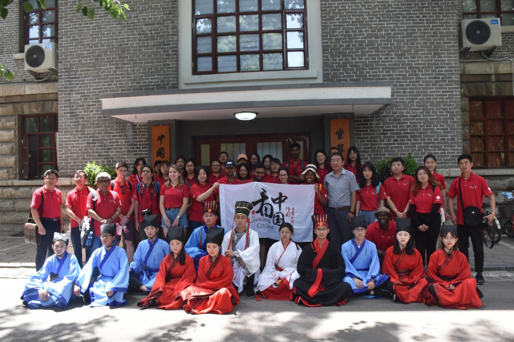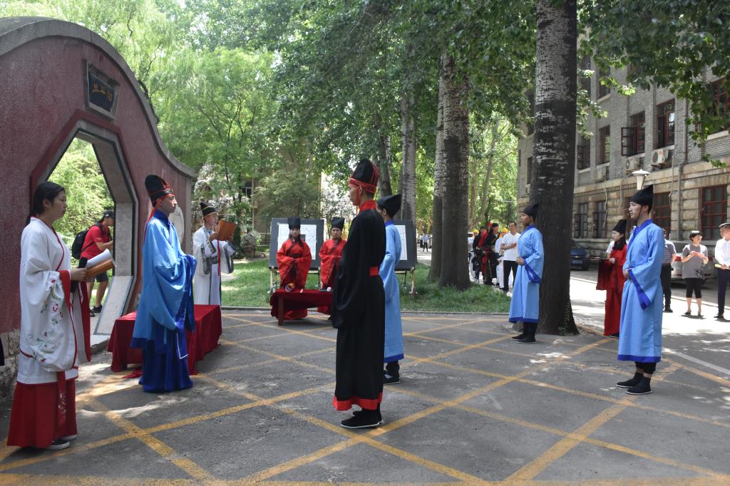6月4日上午,成人短视频 传统礼仪研修中心在萃华园为来我校学习访问的金砖五国留学生展演束脩礼。