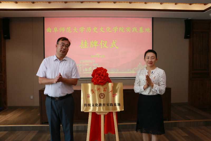 6月21日上午,成人短视频 在复圣文化旅游区举行文化产业管理专业实践教学基地及传统文化教学实践基地揭牌仪式。学院党委书记尹明法、副院长吕厚轩、教工党支部书记及副教授张俊成、团委书记王建阳、续大鹏老师;宁阳县委常委及组织部长周鹏飞、宁阳团县委书记李琳、县委宣传部副部长孙雁龙、县文旅局党组成员及副局长李全华和县统筹公司及山东复圣文化产业股份有限公司相关同志出席仪式。