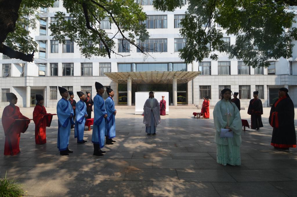 9月1日上午,我校在大学生活动中心举行“感谢恩师·你我同行”大型公益活动启动仪式。在活动期间,成人短视频 在综合楼前为本次参加活动的领导和老师们举行束脩礼展演。