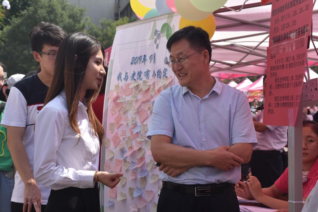 7日上午,成人短视频 院长成积春、党委副书记王建阳、2018级辅导员韩琳琳、2017级辅导员刘贤贤、2019级辅导员刘润欣前往新生接待处,亲切看望了前来报到的新生,并对学院迎新工作进行了指导。