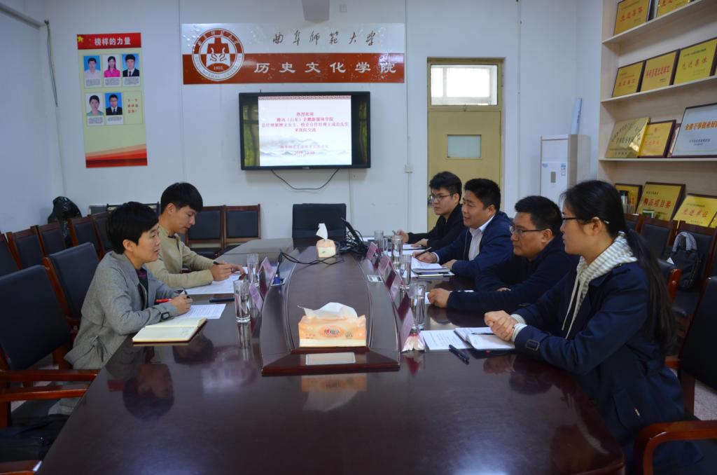 10月9日,腾讯(山东)企鹅新媒体学院总经理郭燕文女士、校企合作经理王成忠先生来成人短视频 交流产教融合工作。成人短视频 副院长王京传、文化产业管理教研室主任郝志刚、团委韩琳琳、青年教师赵庆文参加活动。