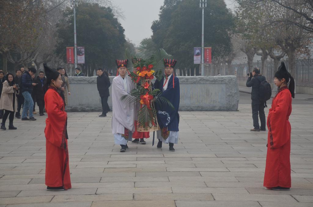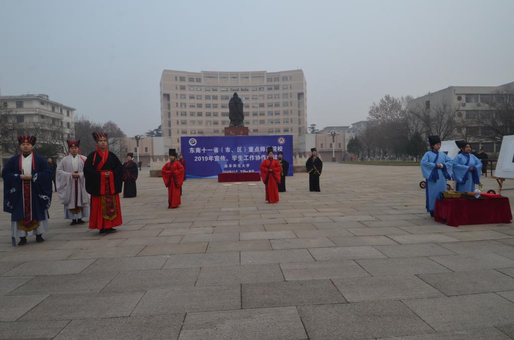 12月23日上午,学院传统礼仪研修中心在孔子文化广场为东南十一省(市、区)重点师范大学院校2019年宣传、学生工作协作会议展演礼仪。