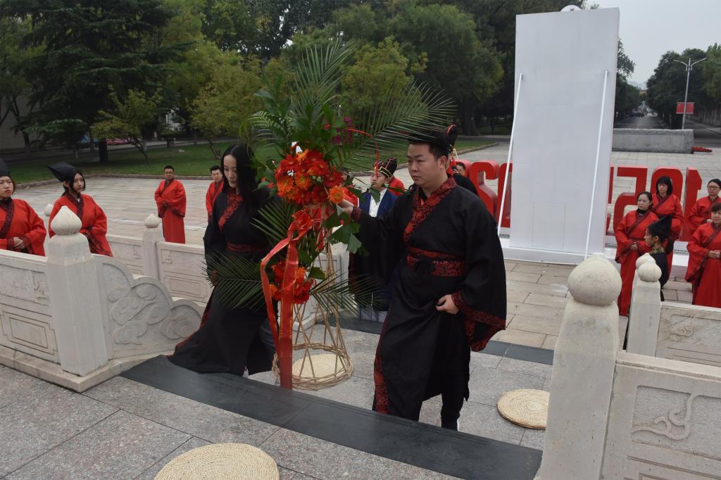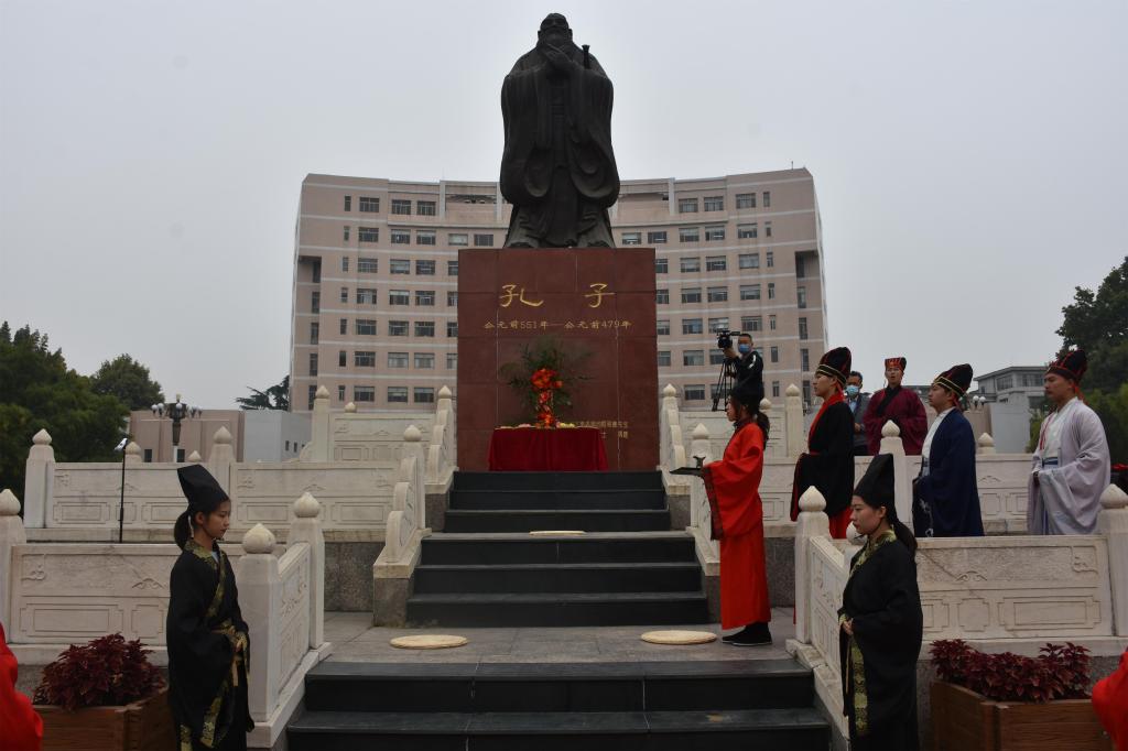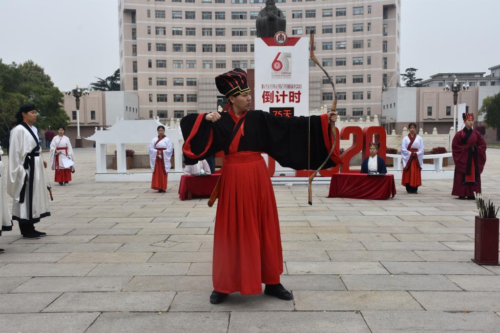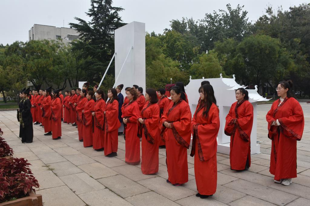 10月13日上午,成人短视频 传统礼仪研修中心在孔子文化广场为新疆生产建设兵团第十二师骨干教师举行了祭孔仪式和射礼的展演。