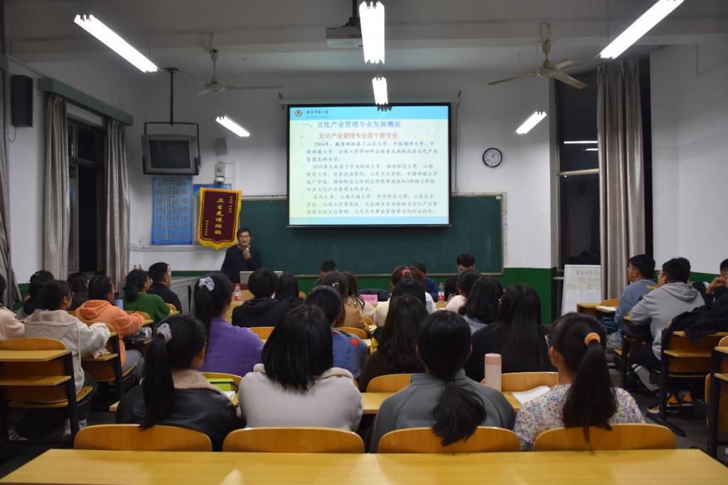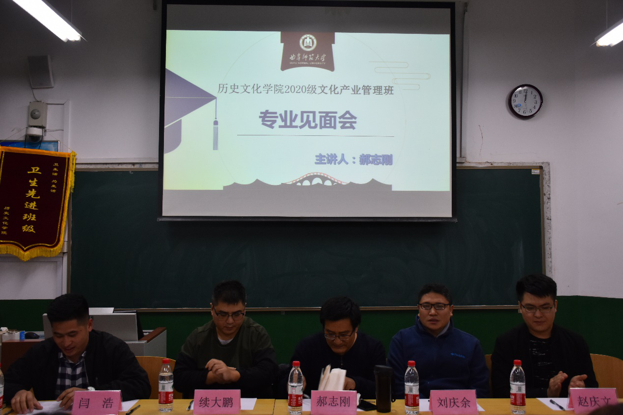 11月6日晚,2020级文化产业管理专业师生见面会在文史楼405教室举行。成人短视频 郝志刚老师、刘庆余老师、续大鹏老师、赵庆文老师以及2020级辅导员闫浩出席了见面会。见面会由闫浩主持,郝志刚老师主讲。