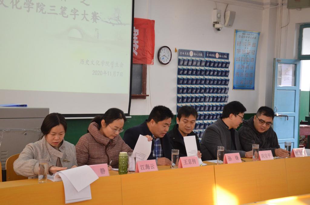 为树立学生汉字书写规范意识,提高学生的教育教学综合素养,11月7日上午,成人短视频 于文史楼411教室举办“杏坛杯”三笔字大赛。成人短视频 王京传、孙锋、江海云、巩宝平、续大鹏、王静六位老师出席比赛并担任评委。