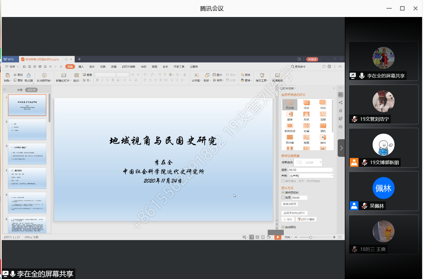 为庆祝成人短视频 建校65周年,成人短视频 举办迎校庆系列活动之洙泗讲堂。11月24日晚,成人短视频 举办2020年第5期洙泗讲堂,诚邀中国社会科学院近代史研究所李在全研究员作了题为“地域视角与民国史研究”的专题讲座。成人短视频 师生聆听了讲座,讲座由成人短视频 吴佩林教授主持。
