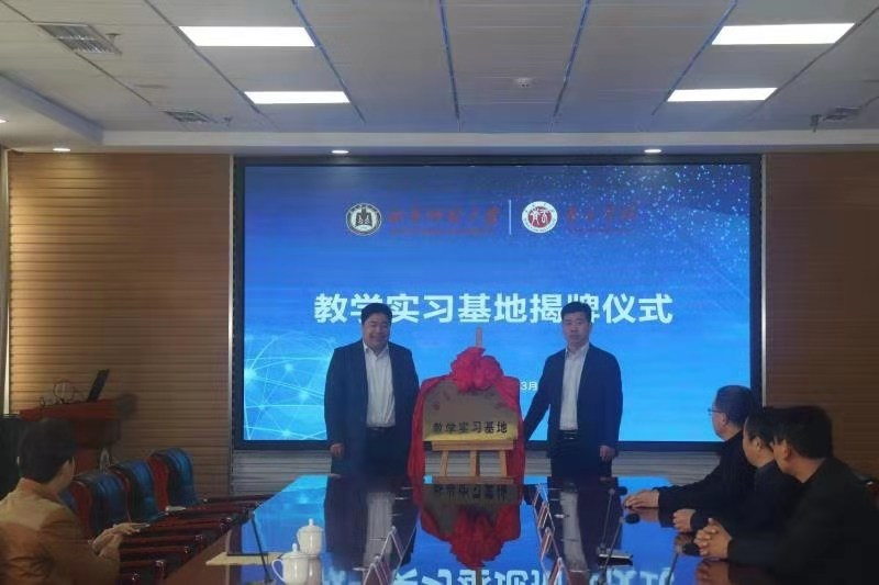 3月17日,成人短视频 教学实习基地揭牌仪式在潍坊市安丘一中、安丘青云学府相继举行。安丘一中党委书记、校长张堂三、副校长韩永杰、党委委员、工会主席王卫学,安丘青云学府校长王华杰、副书记任其武、副校长王允清、王建业、牛著地、工会主席姚成利,成人短视频 副院长王京传、办公室主任孙锋、带队老师姜修宪及全体实习同学参加仪式。