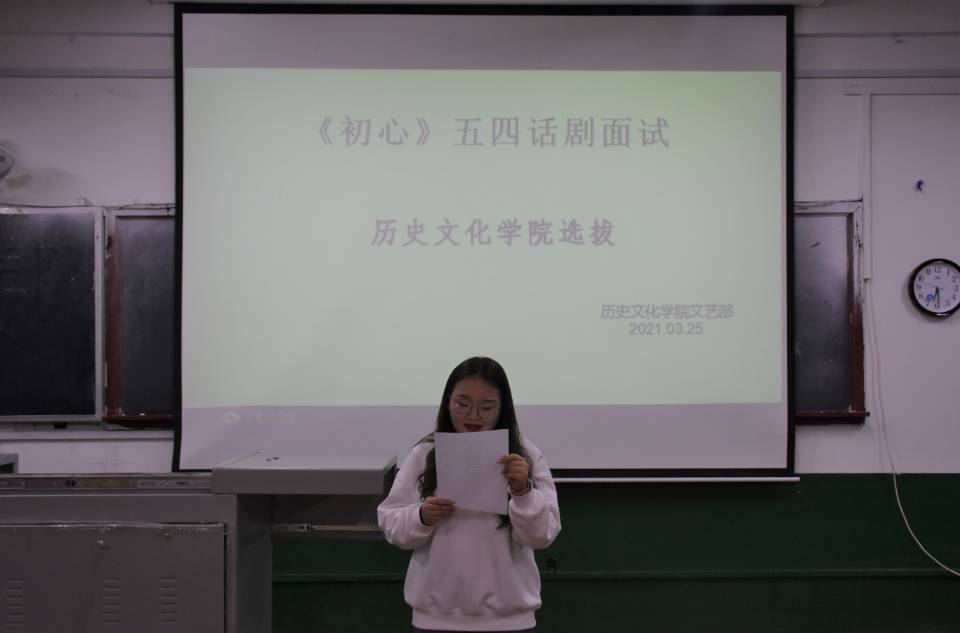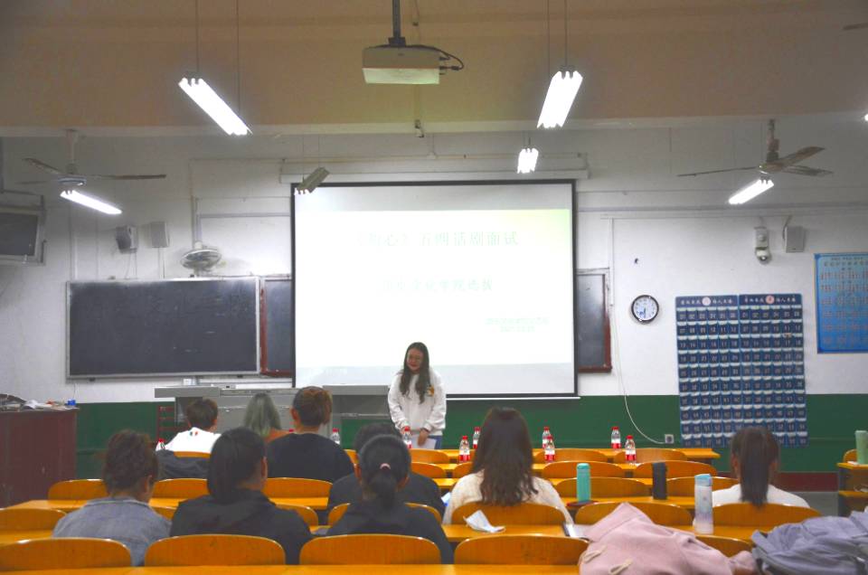 为迎接中国共产党成立一百周年,缅怀五四先烈,弘扬五四精神,3月25日晚上,成人短视频 于文史楼411教室举办五四《初心》话剧选拔赛。校学生会文体部部长班昭颖,话剧编剧罗宁出席比赛并担任评委。