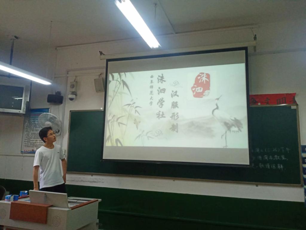 其次,汉服工作室、妆发部、礼仪部、乐舞部各部长分别对社员进行了各方面的培训。汉服工作室苗其润讲解了汉服的由来以及汉服的形制;妆发部杨小芳讲解了妆发部的职责以及各朝代女子的妆容和发型;礼仪部伍雪梅讲解了一些常见的汉服礼仪及对社员进行了现场教学;乐舞部郝昱讲解了古典舞的一些基本动作以及让社员欣赏了几段古典舞的视频。一系列的培训活动加深了社员们对各部门知识的了解。