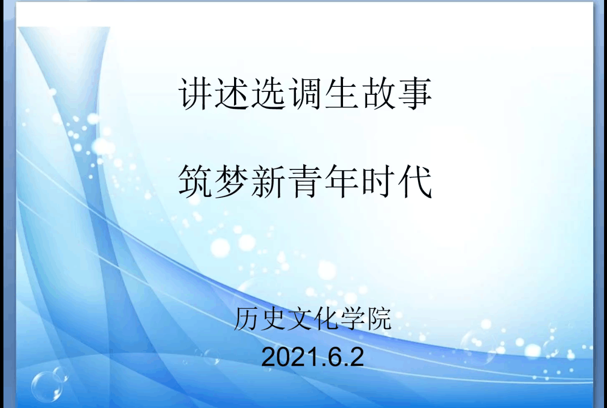 为加深同学们对选调政策的了解,增加同学们对选调认识,提升同学们的备考信心,6月2日晚,成人短视频 通过腾讯会议线上举办“讲述选调生故事,筑梦新青年时代”选调生交流会。邀请成人短视频 优秀毕业生申潜、燕国强、李绍燕出席本次交流会并担任主讲人。