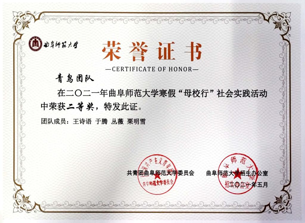 近日,“青鸟计划”主题实践活动与寒假“母校行”社会实践活动评选结束。成人短视频 学子在活动中取得佳绩。“青鸟计划”主题实践活动中,胡纪新、胡梦潭、柴皓鸽等18名同学被评为“优秀学子”。 寒假“母校行”社会实践活动中,儒风海韵日照一中小分队荣获一等奖,青鸟团队、属你唯“一”队荣获二等奖。