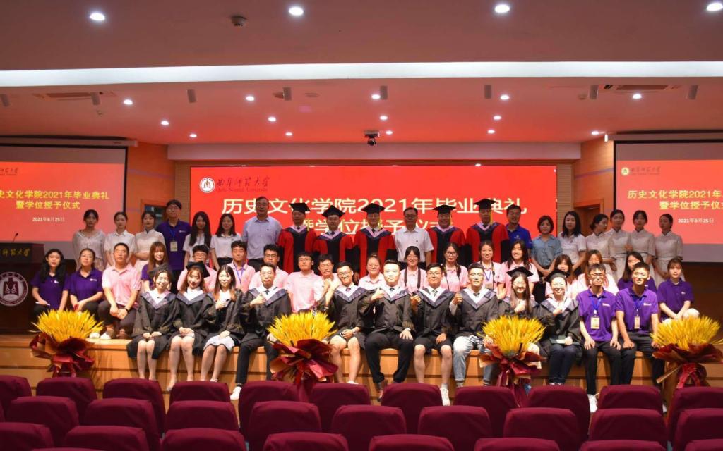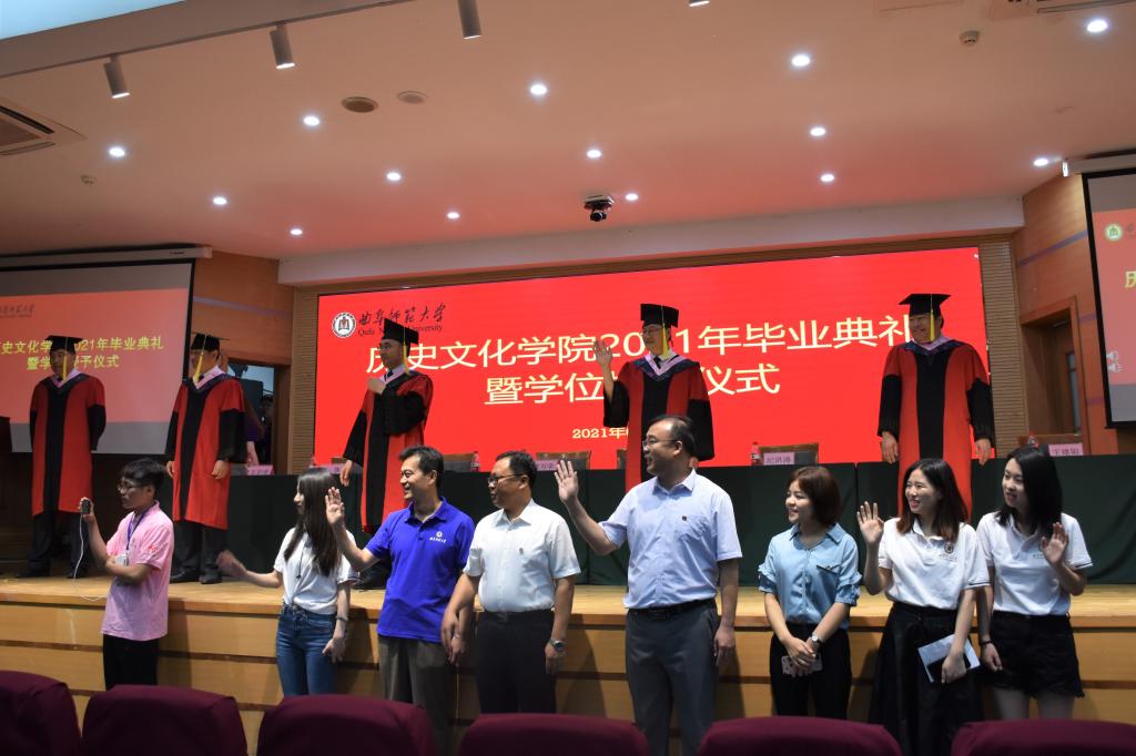 2017级历史学(师范)二班的庄亚婷同学代表本科生毕业生发言,字里行间流露出对母校的依依惜别之情,并表达了对未来自我发展的信心与期待,努力将个人的发展融入到国家的发展中去,才能不负韶华,永葆少年凌云志,意气风发地谱写无愧于时代的青春华章。