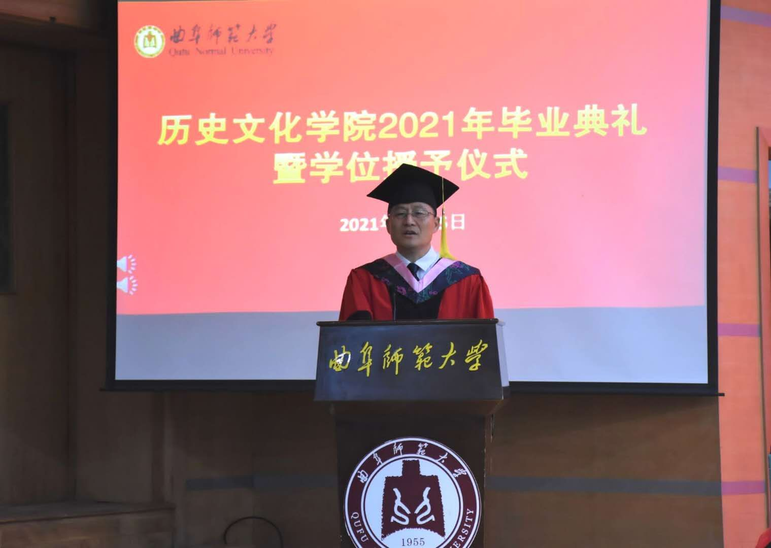 研究生毕业生代表、2018级中国史专业硕士研究生申潜同学表表达了对校园的眷恋、对师长的感激、对母校的祝愿。他说,作为一名即将赴基层工作的选调生,一定会铭记母校校训,传承先辈精神,牢记史院人的责任,肩负时代使命,让青春在为祖国、为民族、为人民、为人类的不懈奋斗中绽放出绚丽之花。