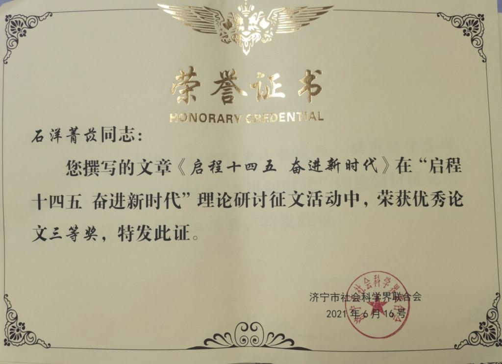 近日,济宁市社科联在全市开展“启程十四五 奋进新时代”理论研讨征文活动。成人短视频 学子踊跃参与并在征文活动中荣获佳绩。