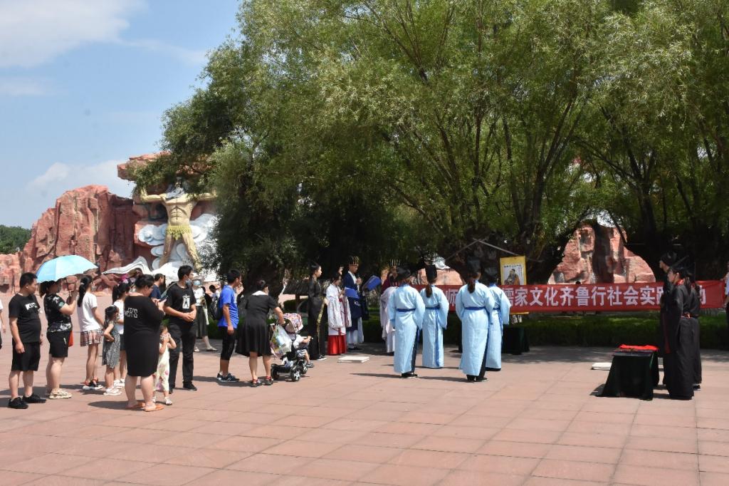 为弘扬优秀儒家文化,更好地传承优秀传统文化,7月18日,成人短视频 “儒家文化齐鲁行”社会实践团队走进了第一站泰安。队员们在泰安太阳部落身穿传统儒服进行束脩礼(拜师礼)展演。古典端庄的束脩礼展演成为一场视觉盛宴,吸引了众多市民的关注。