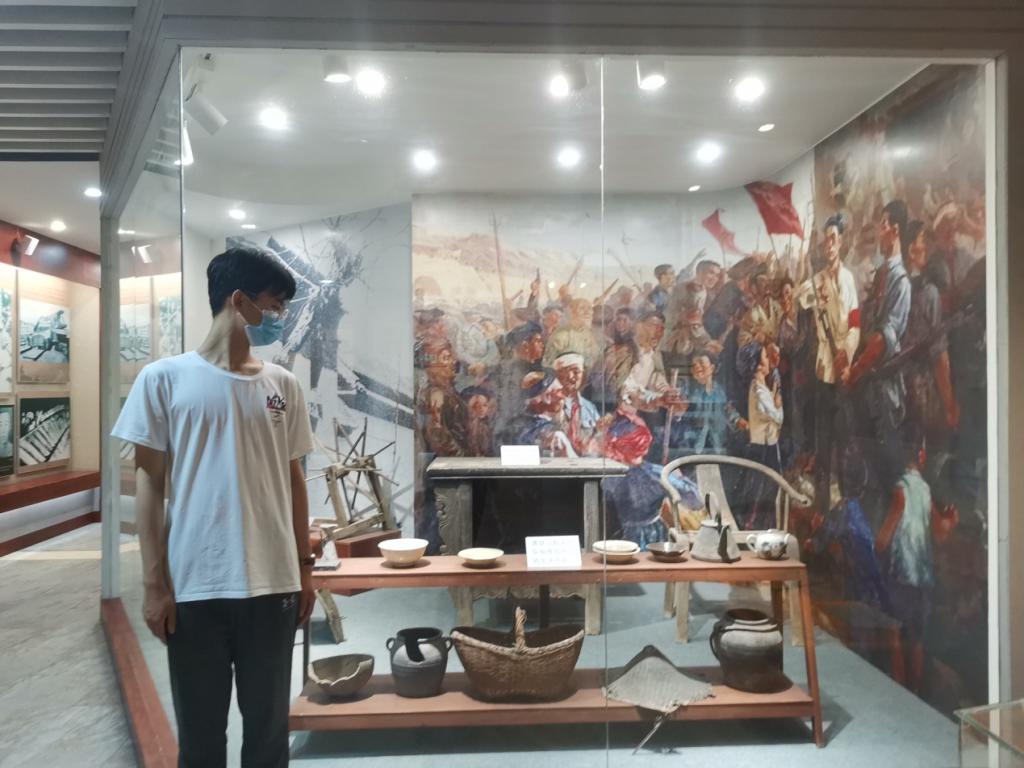 第一展厅分为“抗战爆发”和“高举义旗”两部分,通过图片和实物展现了英勇悲壮的黑铁山起义经过及其战果。来访的游客多是来自于淄博市的各小学和各中学学生,到此秉承对革命先辈的尊敬,学习红色革命精神,感悟时代先锋。实践队员指出,黑铁山抗日武装起义是在日本大肆轰炸华北地区,发动全面侵华战争的背景下,马耀南等革命志士揭竿为旗,打响清和平原抗日武装起义的第一枪。黑铁山武装起义军队夜袭长山城、伏击日军汽艇,活跃在胶济路南北,打击了日本侵略者的嚣张气焰。并且在1938年6月起义部队编为八路军山东人民抗日游击第三支队(后改称八路军山东纵队第三支队)。