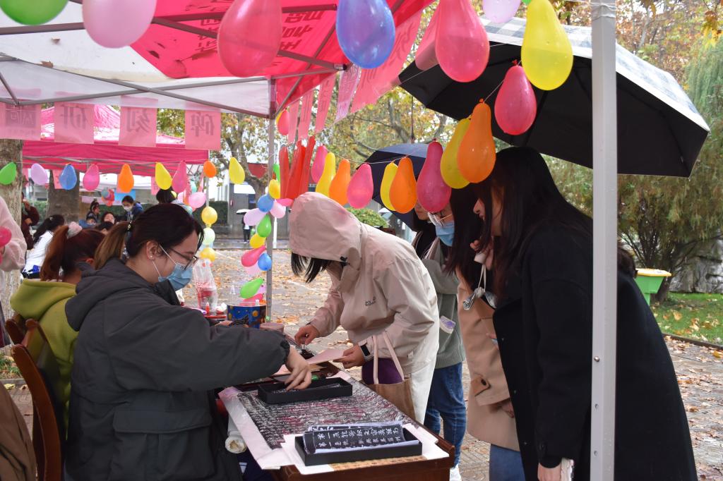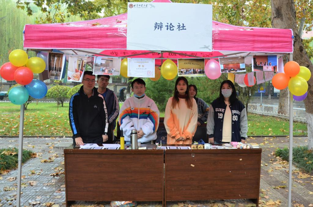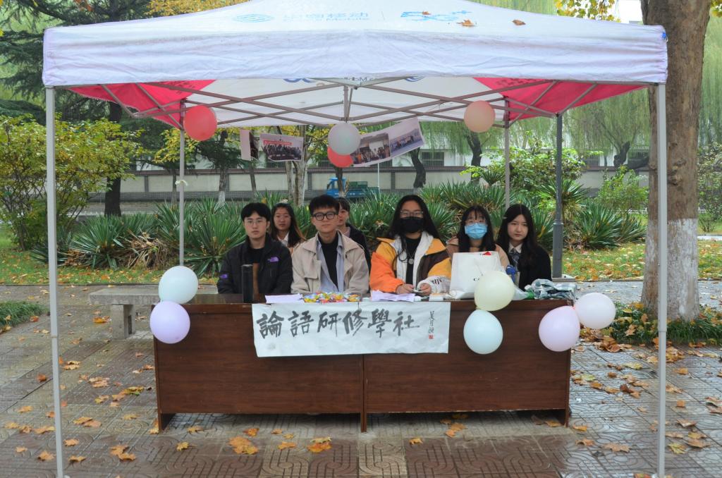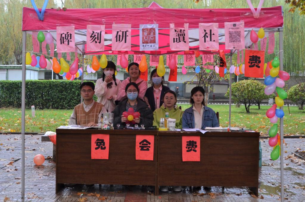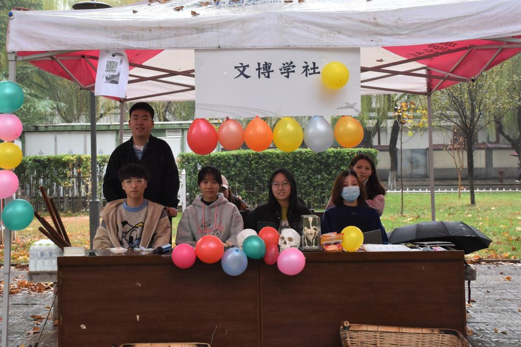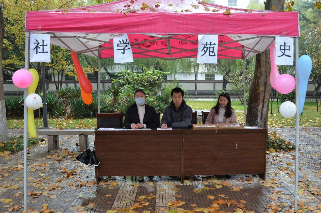 为响应学校防疫要求,以学院为单位进行社团纳新,11月6日,成人短视频 洙泗学社、《论语》研修学社、史苑学社、文博学社、拾光文化创意社、辩论社、羽毛球协会、碑刻研读社于文史楼前积极进行纳新。